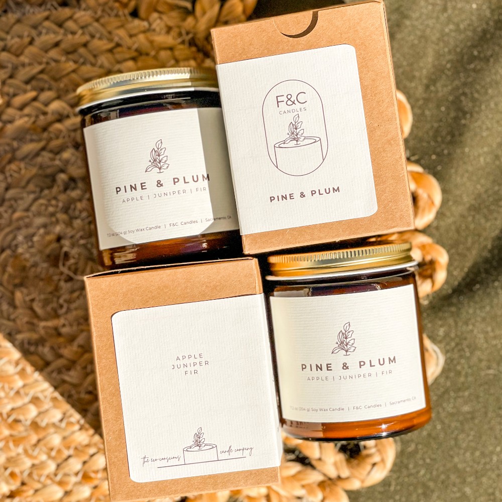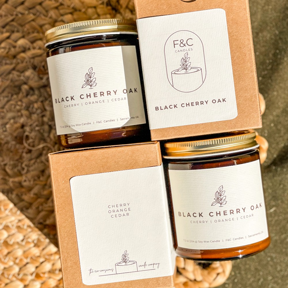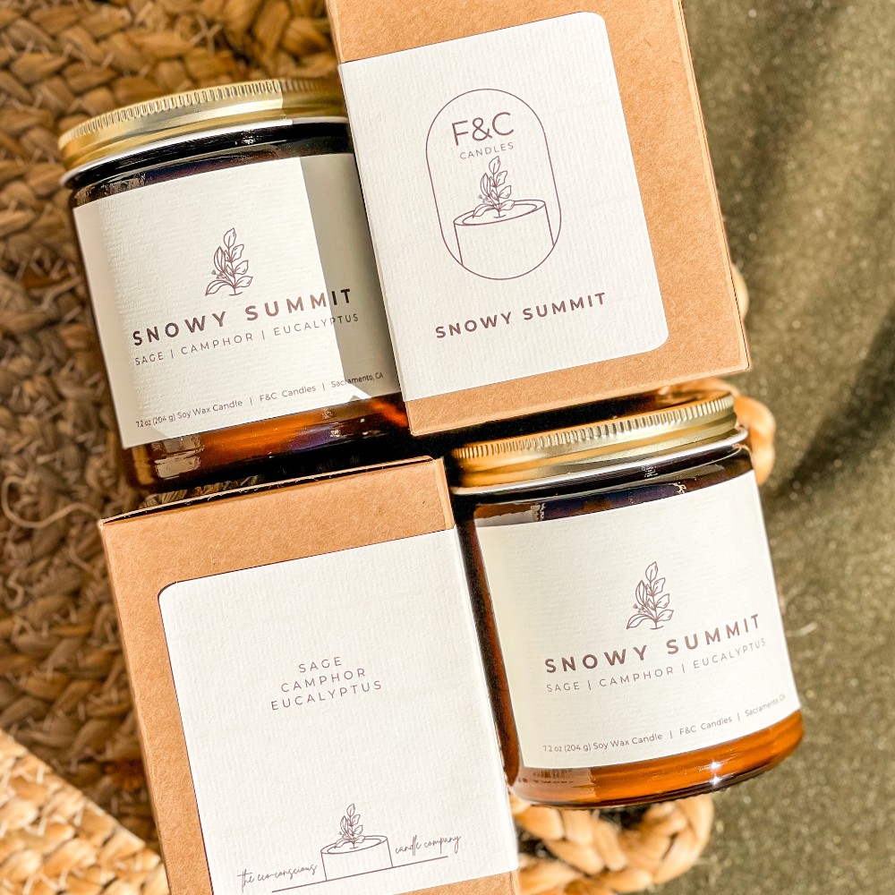 Winter Drop 20257.2 oz natural soy wax candle made with phthalate-free fragrance oils, poured in amber glass jars with gold lids.