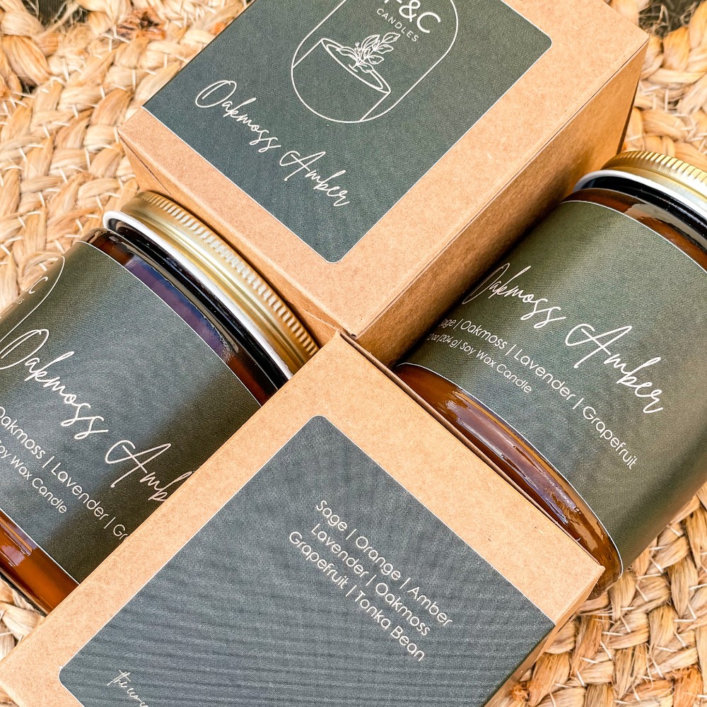 7.2 oz of natural soy wax | phthalate-free fragrance oils | lead- and zinc- free wicks | amber glass jars with gold lids