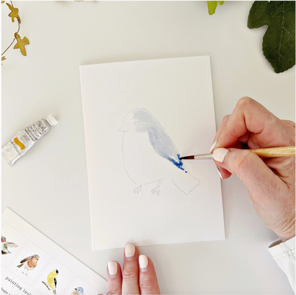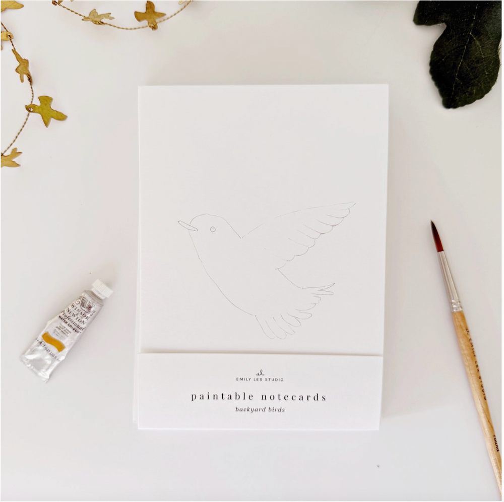 Paint your own special cards and send to loved ones! Sketches are printed on the front of each card with simple instructions for you to paint in with watercolors. You'll receive eight cards with two of each illustration: hummingbird, robin, goldfinch, bluebird. Perfect for artists of all ages!
