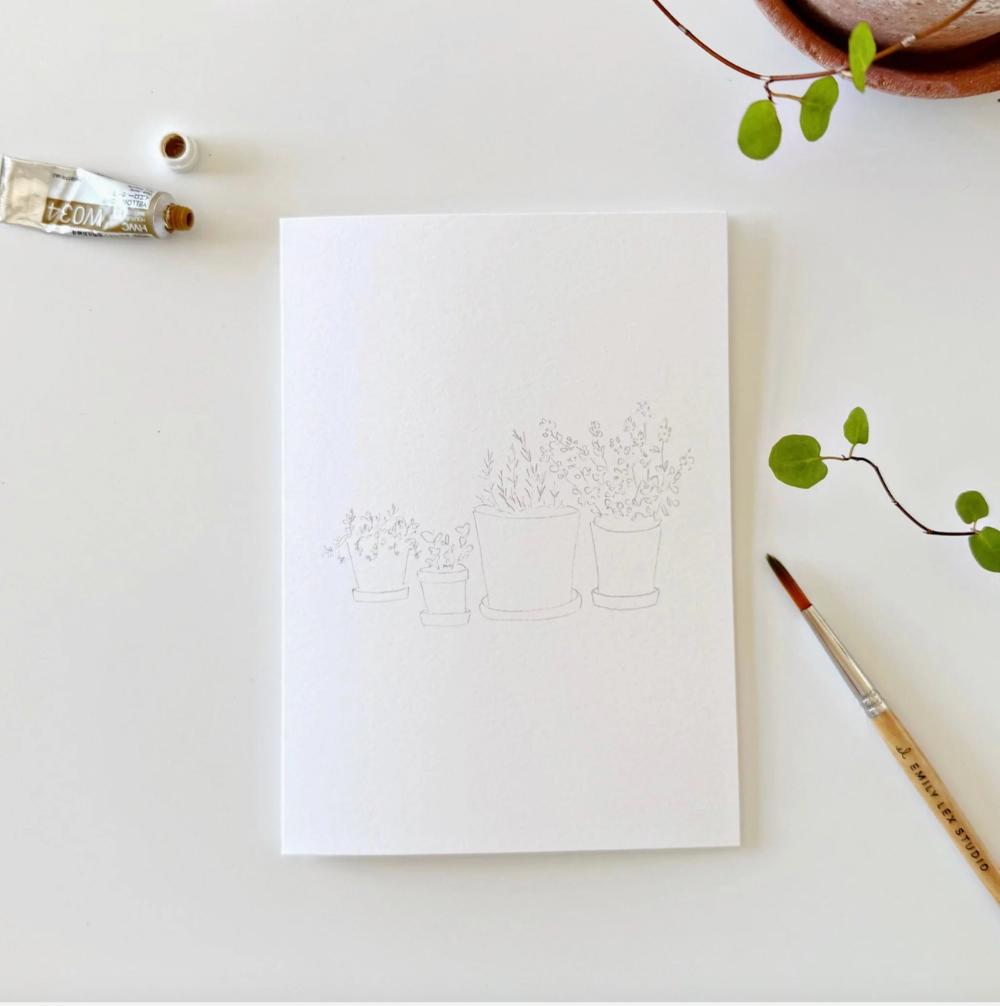 Paint your own special cards and send to loved ones! Sketches are printed on the front of each card with simple instructions for you to paint in with watercolors. You'll receive eight cards with two of each illustration: maidenhair fern, lavender, herbs, and sweet pea. Perfect for artists of all ages!