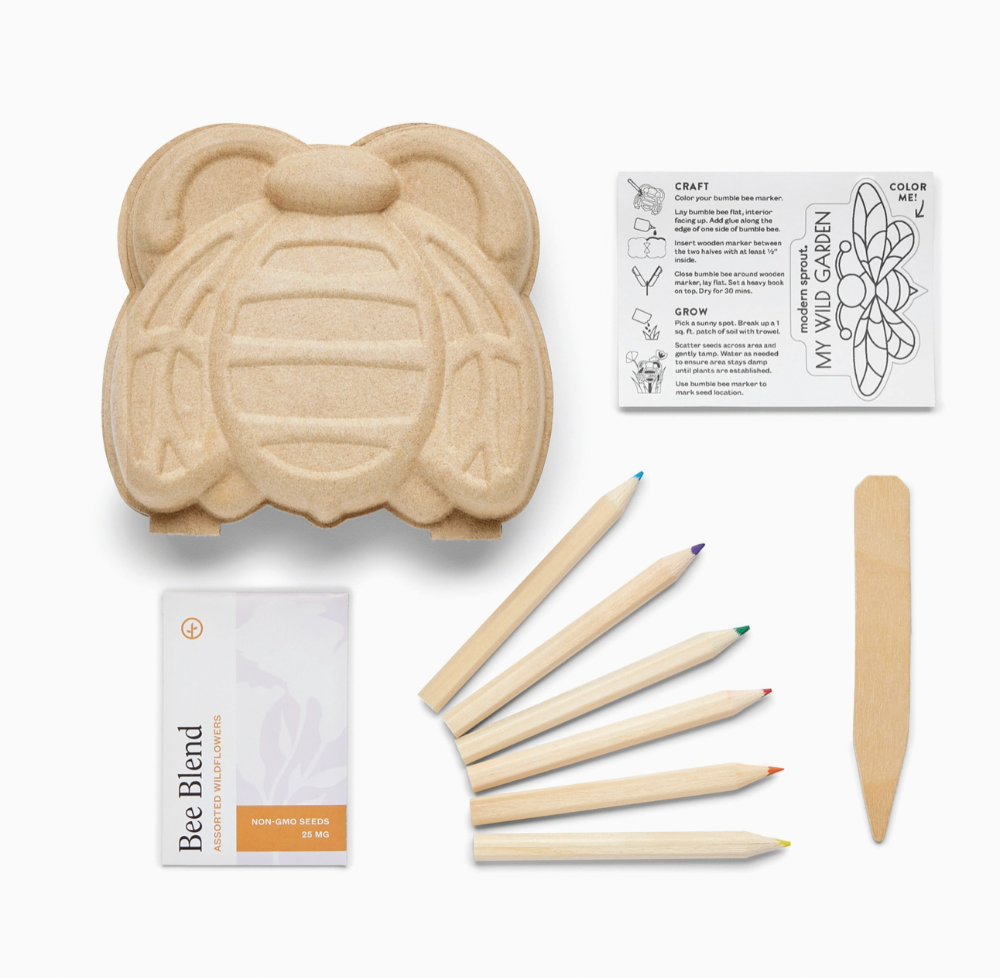 Restore nature’s floor with our Pulp Critter Kit. Includes non-invasive pollinator-friendly wildflower seeds, paper pulp bumblebee, wooden marker and colored pencils. After being colored in, the paper pulp bumblebee serves as a plant marker for your wildflower garden. Your critter is backyard compostable!
