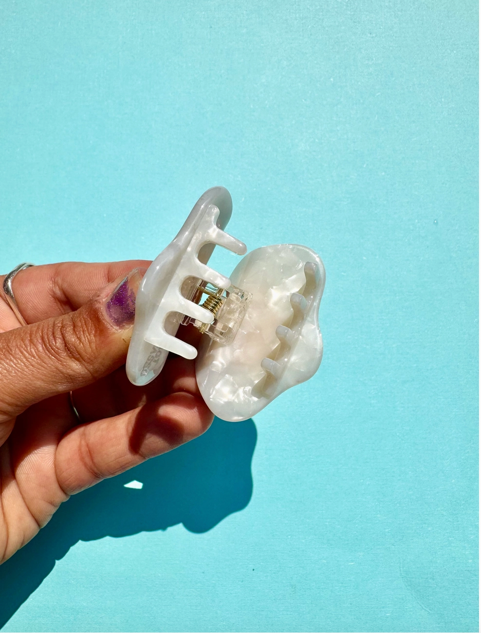 Egg-press yourself with this mini egg clip. These hair claws are made from eco-friendly cellulose acetate. They are perfect for adding color to any outfit. They are 1.75 inches long and1.25 inches wide.