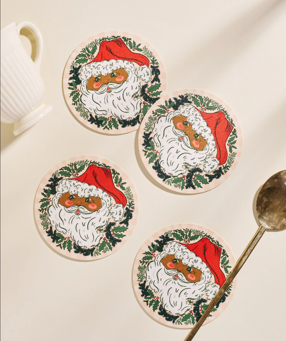 Set of four chipboard coasters, measuring 3.7 inches.
