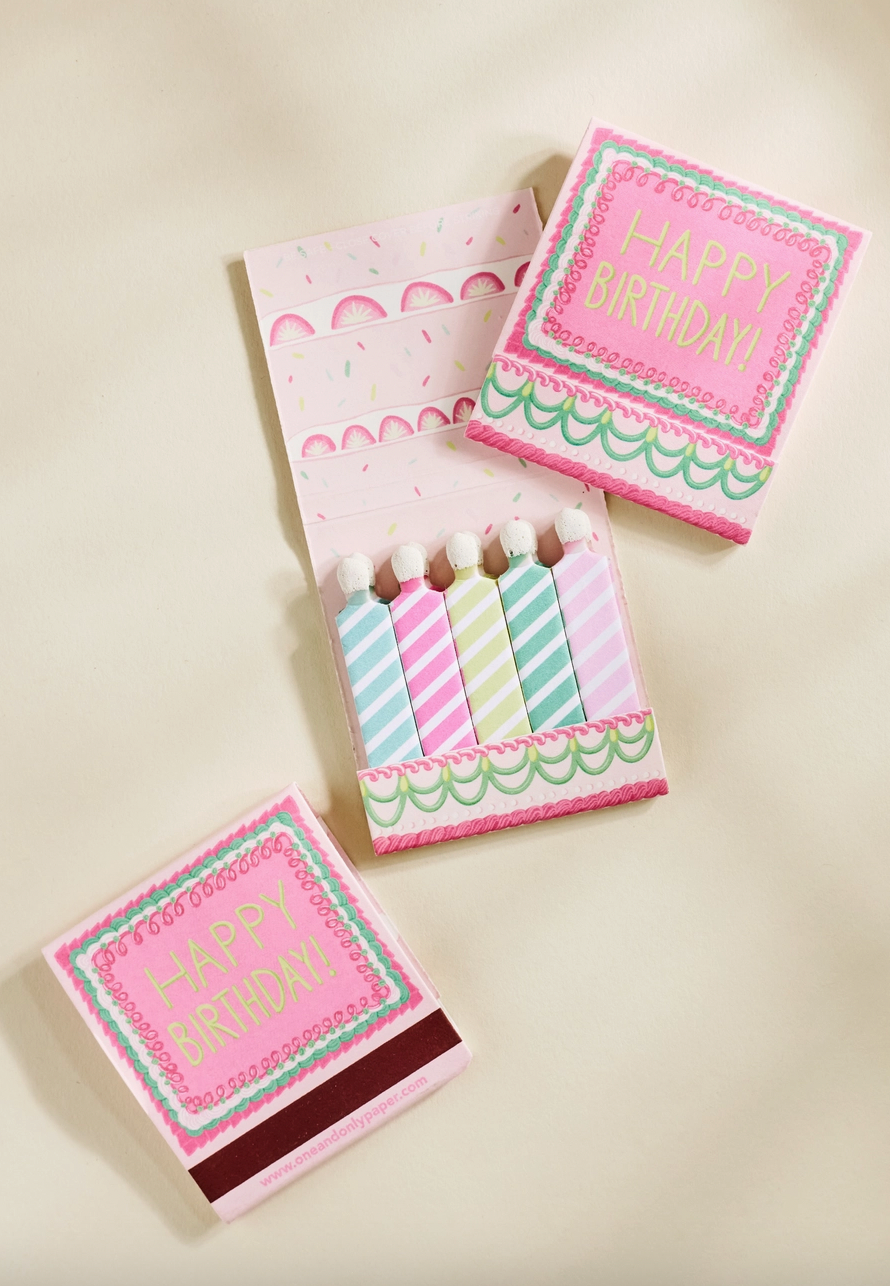 An illustrated vintage cake with candle matches inside... what could be cuter! Start a birthday tradition or just add a little zest to a gift with this matchbook.