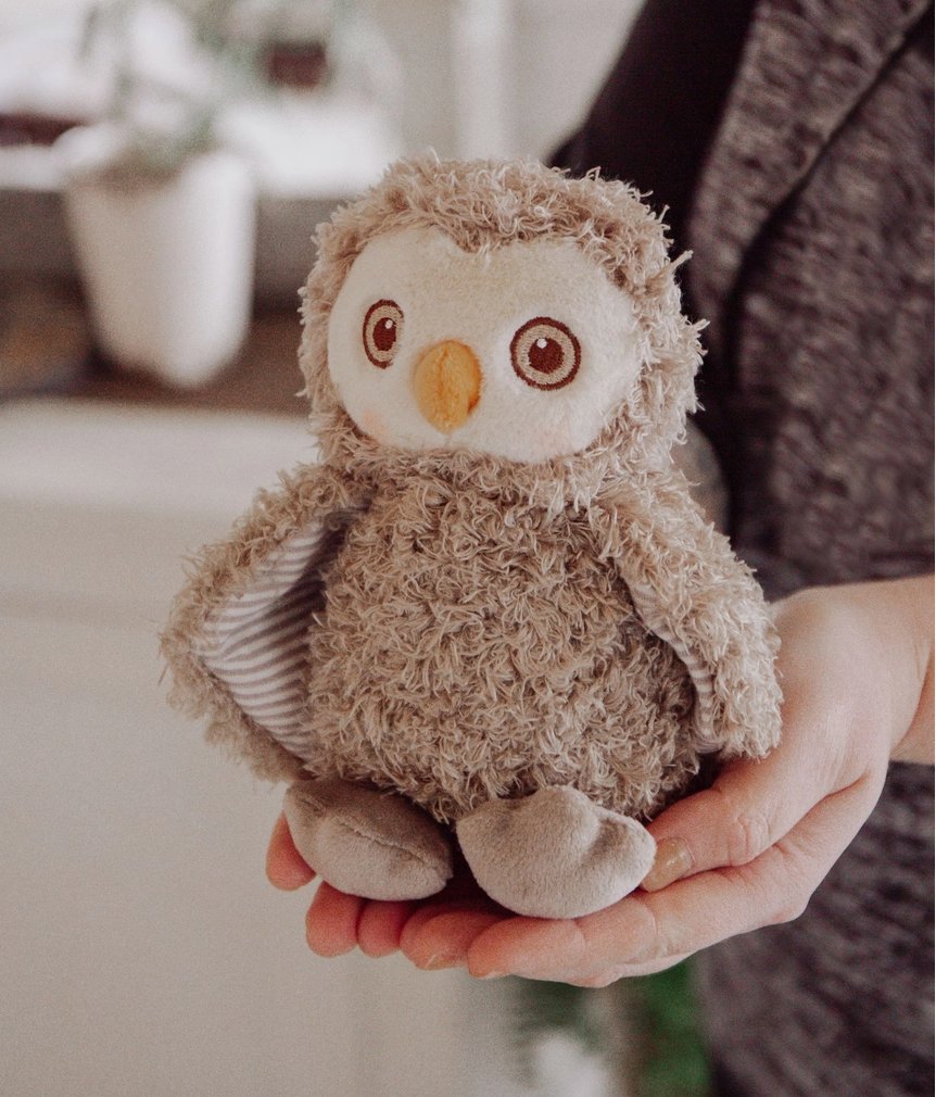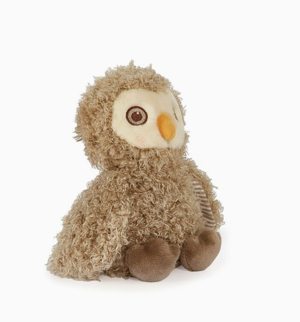 Blink the Owl is a wise choice for little ones of any age! This adorable 8-inch owl stuffed animal is a perfect addition to our woodland stuffed animal line. His super-soft scraggle fur body is accented with sweet striped underwings, and his embroidered features make him a safe friend for little ones of all ages! Soft velour accents provide tactile contrast for growing brains.