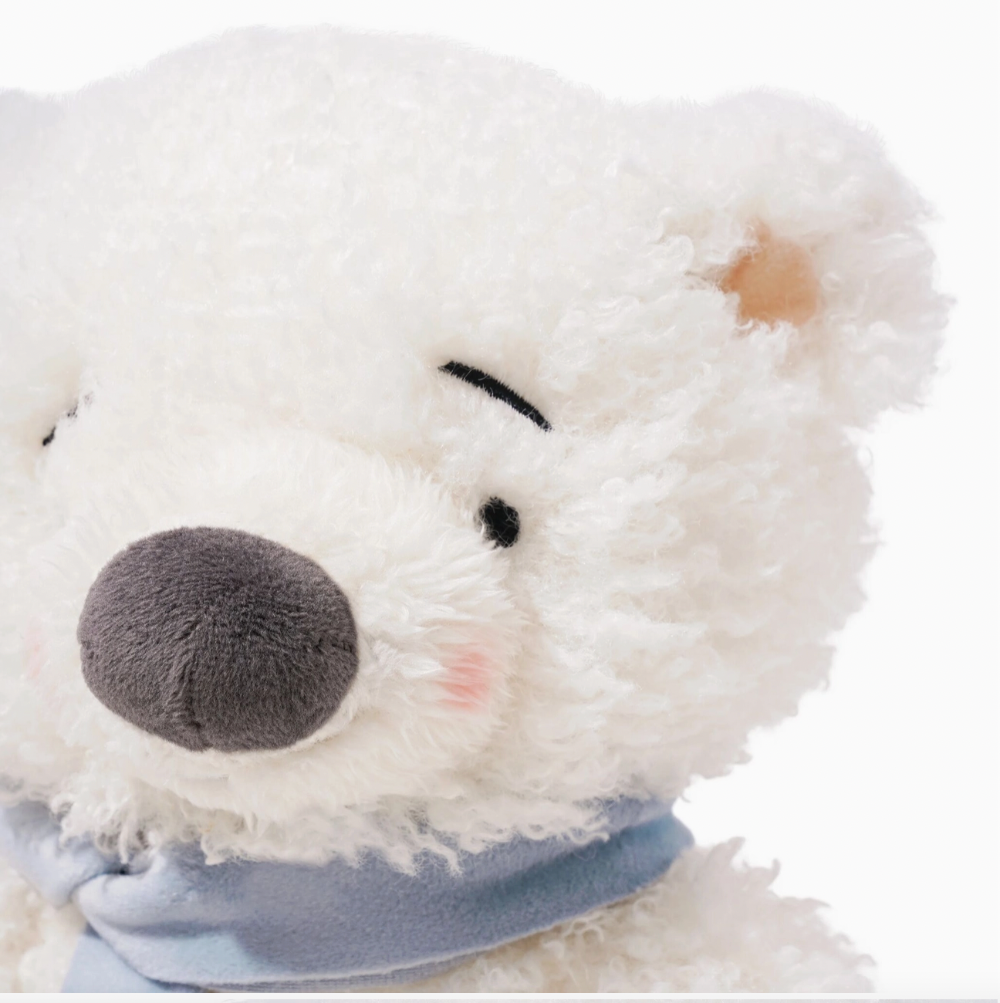 Boris, the cuddliest polar bear you'll ever know! With his luxuriously soft white fur and an adorable blue scarf, Boris is ready to bring a touch of winter magic to your snuggles. Perfect for little hands or as a charming addition to any nursery or gift collection, this plush friend is as huggable as he is lovable