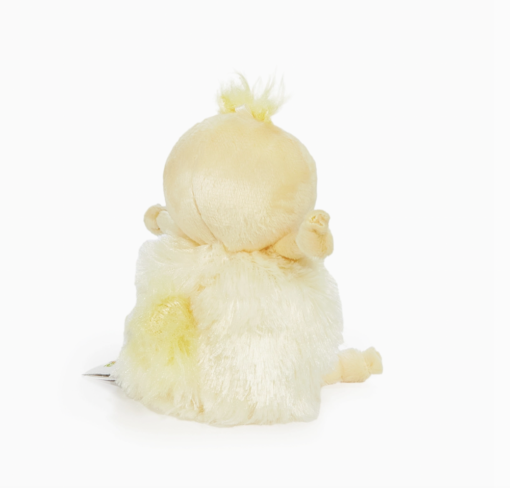 Meet Peep! Your teeny plush friend who is perfectly sized for small hands. Peep Roly Poly is a yellow furry chick stuffed animal with hand embroidered face and dangly, knotted arms and legs.