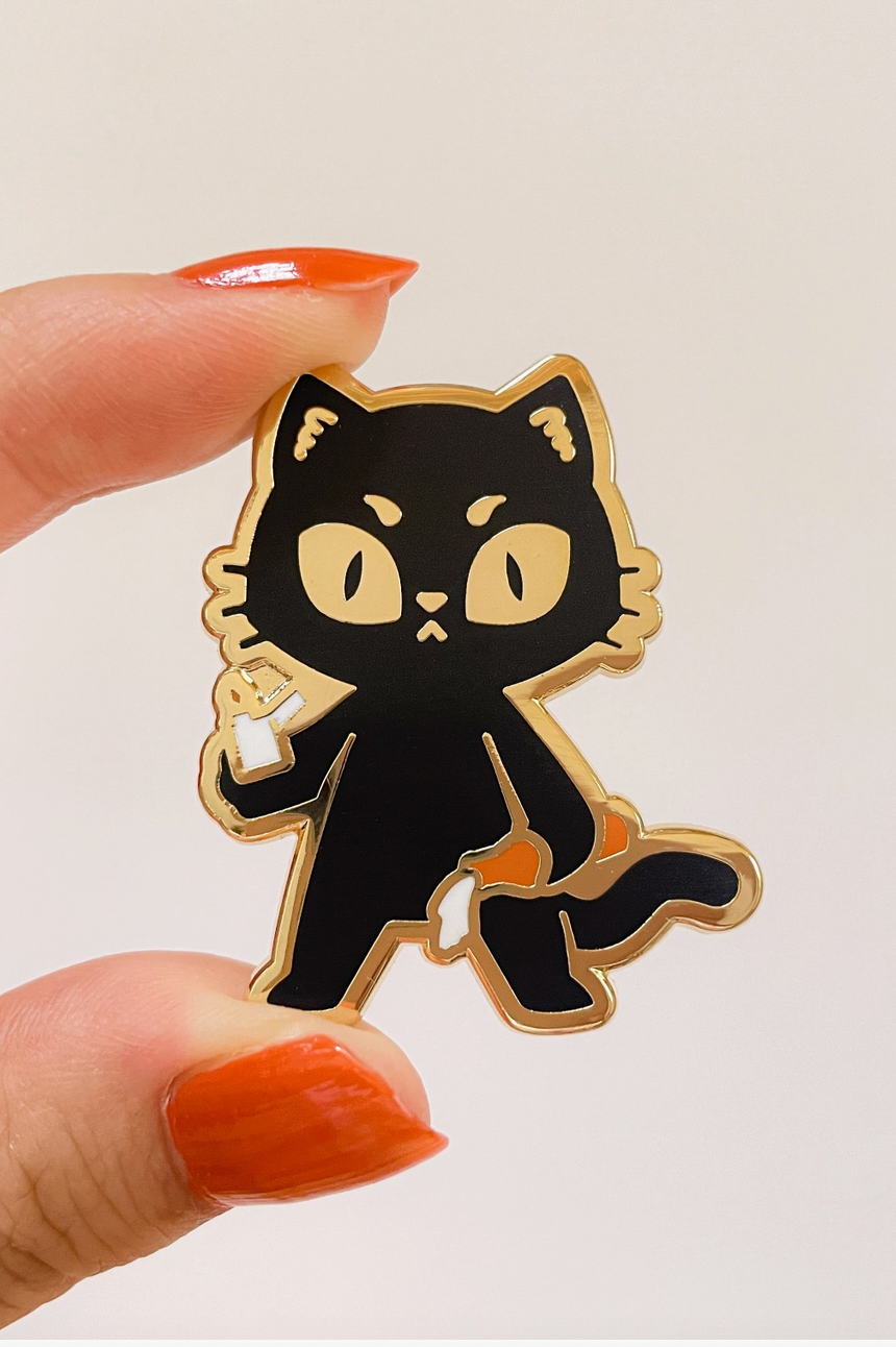 Illustration features a black cat holding a molotov and lighter, ready to light some shit on fire.