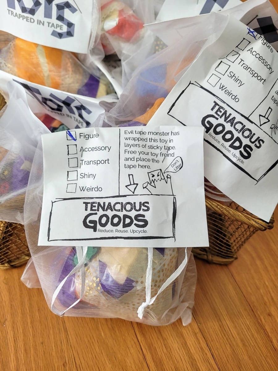 **If you buy a Toy Trapped in Tape online, you will be given a random bag, unless you include a message to us (on the check out page.) We will do our best to honor toy-type requests, pending availability.